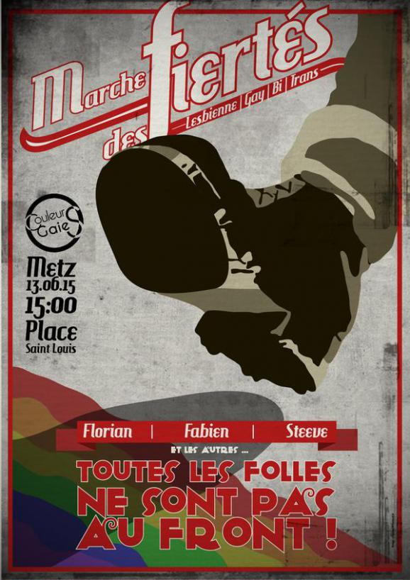 «Florian, Fabien, Steeve et les autres… toutes les folles ne sont pas au Front!» qui fait référence directement au parti d’extrême droite française le FN. Coup de pub bien placé ou message politique? Dans tous les cas, plusieurs Français connaissent aujourd’hui la date de la Gay Pride de Metz édition 2015.